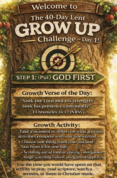 Today is Ash Wednesday, the beginning of a powerful season of repentance, self-sacrifice, spiritual discipline, and personal reflection. Lent is not just about giving something up—it’s about growing up spiritually. It’s about intentionally choosing to (Put) God First in every area of our lives.